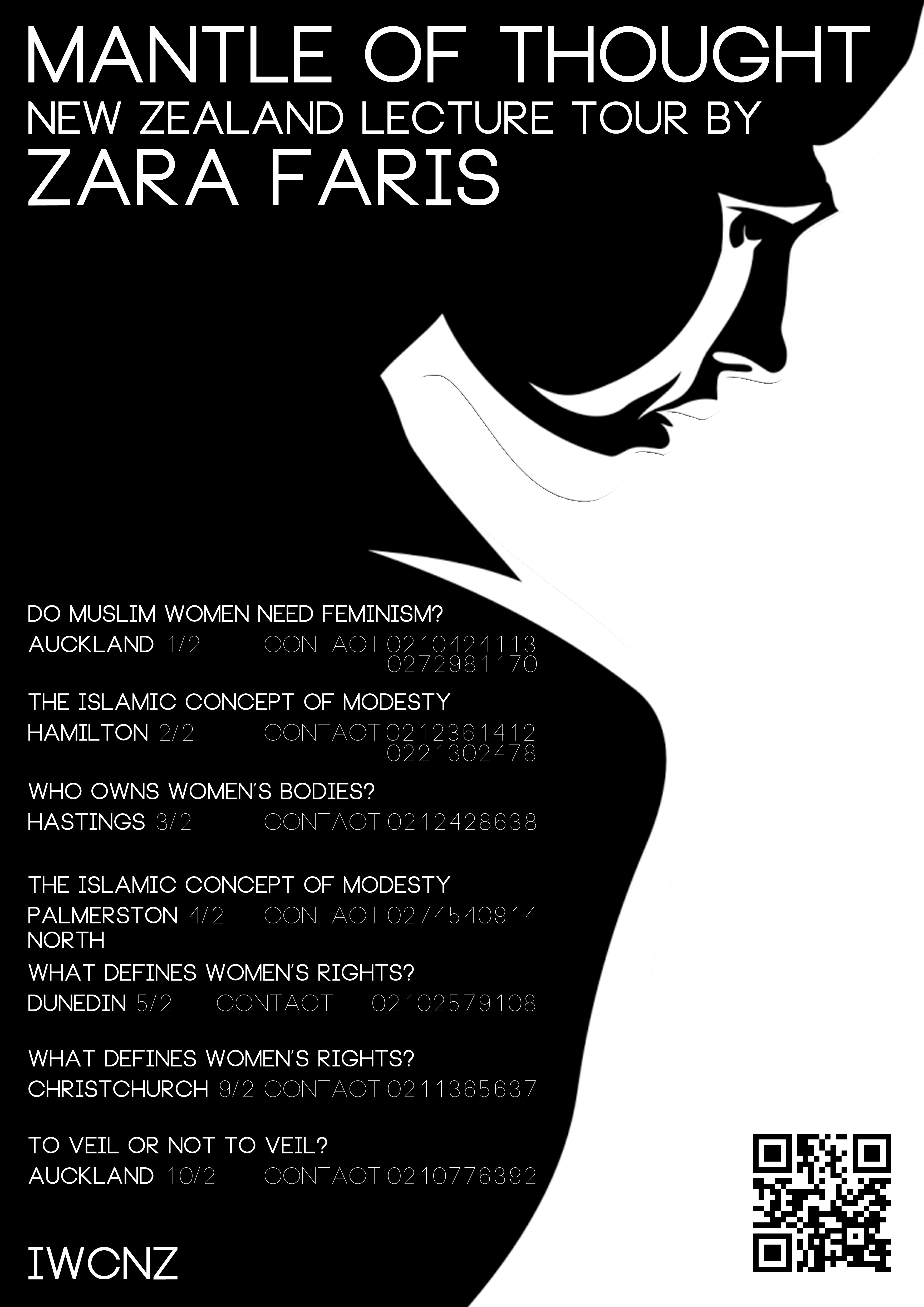 I’m excited to share that my tour of New Zealand is due to soon begin. I’ll be visiting universities and community venues around the country, inshaAllah, and ending at the IWCNZ “Passing the Torch” Conference in Christchurch.